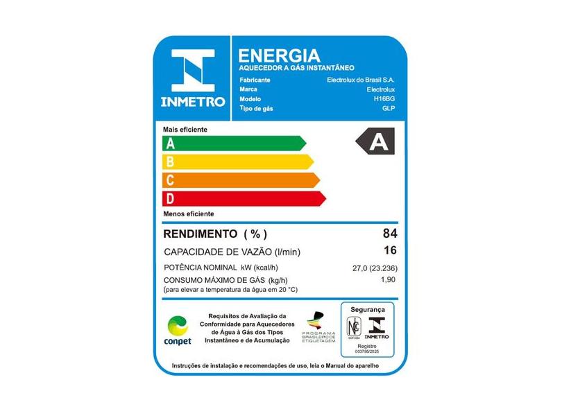Aquecedor de Água a Gás Electrolux GLP Digital Experience 16L H16BG