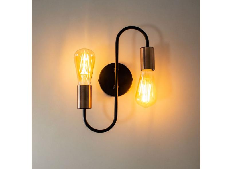 Luminária Arandela Moderna Dupla Trace Abajur Parede Soquete E27 + 02 Lampadas Filamento De Carbono St64 110v St1353