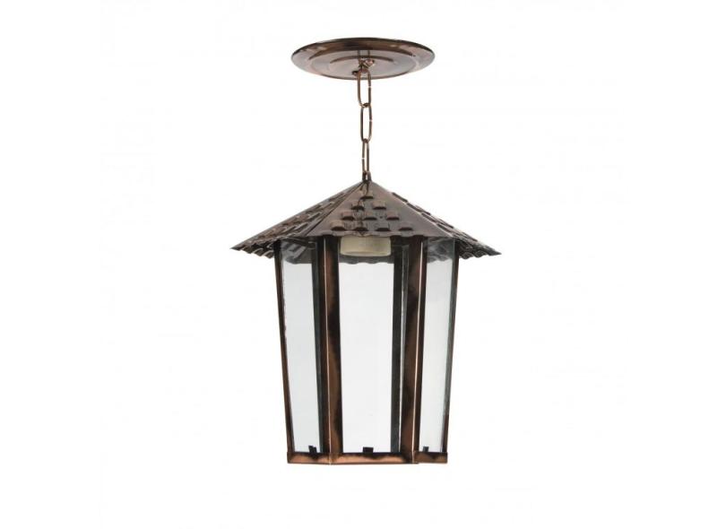 Pendente Sextavado Colonial Externo Vidro Liso Blumenau Cobre