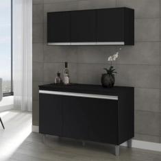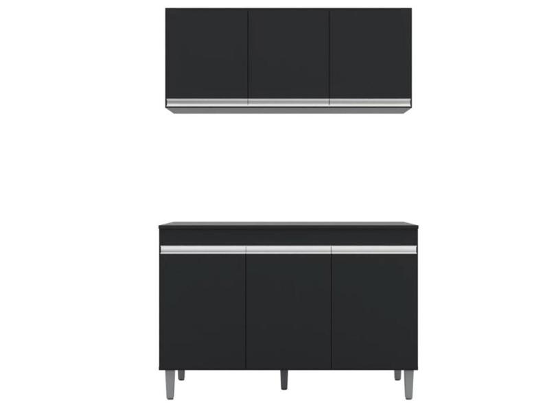 Aéreo 3 Portas Emma + Gabinete Balcão Mia 3 Portas para Cozinha Preto
