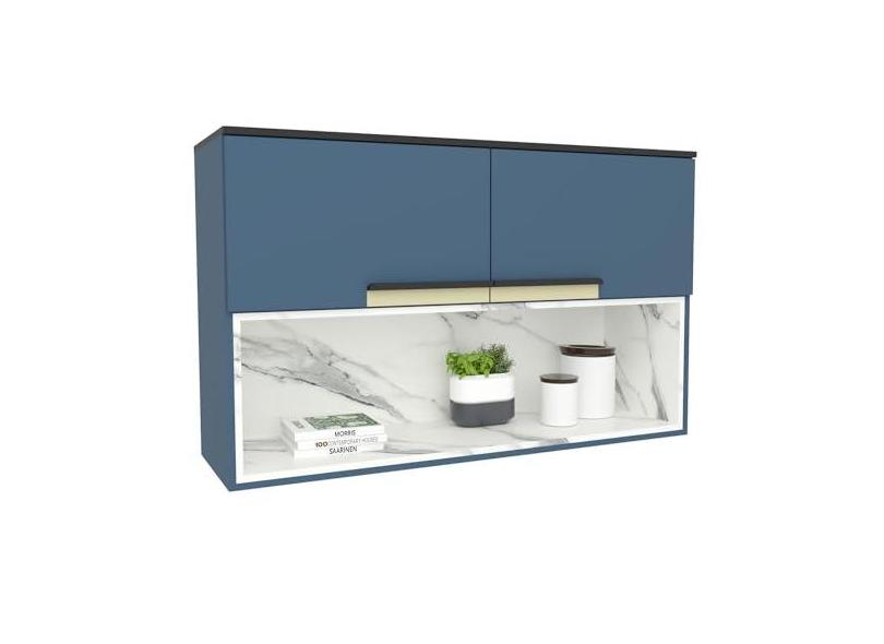 O menor preço encontrado no Brasil para Armário Aéreo 120cm 2 Portas 1 Nicho Cozinha Flórida Azul Órion/Calacatta atualmente é R$ 638,06.