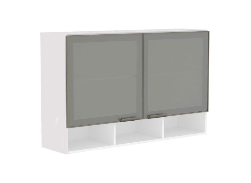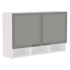 Armário Aéreo 120cm 2 Portas Branco C/Nicho E Vidro
