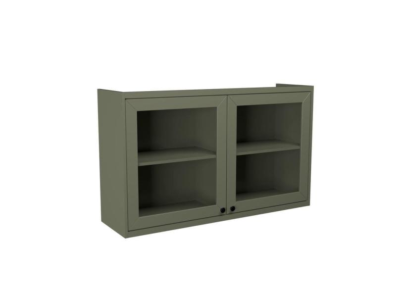Armário Aéreo 120cm 2 Portas Com Vidro Moldurado Cozinha Sevilha Verde