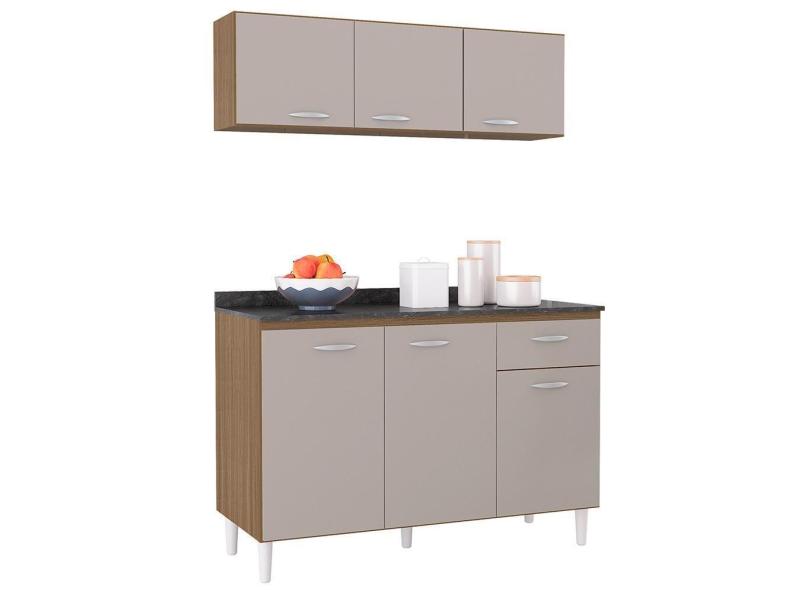 Armario Aereo 3 Portas E Balcao 120 Cm Castanha Off White Poqq Castanha Off White