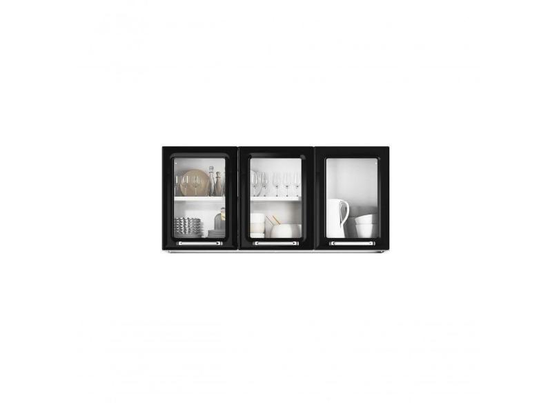 Armário Aéreo 3 Portas Vidro Tarsila - Itatiaia Preto