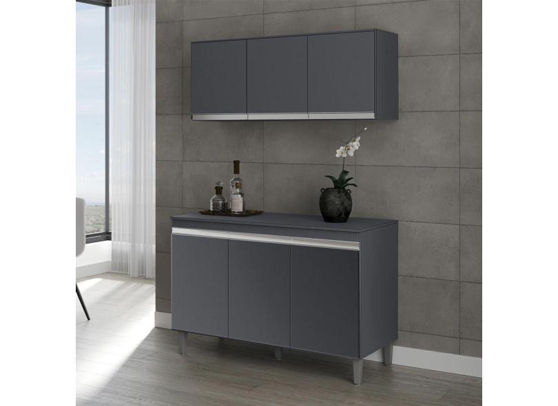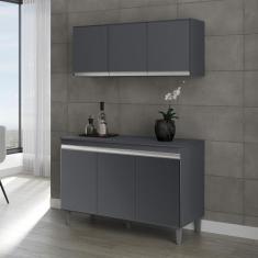 Armário Aéreo Andréia E Balcão Gabinete Sem Tampo Manu 120Cm Cinza Fosco - Ajl Móveis
