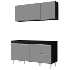 Armário Aéreo Argélia e Balcão Gabinete Para Pia 150cm sem Tampo Marrocos Preto/Cinza - Lumil