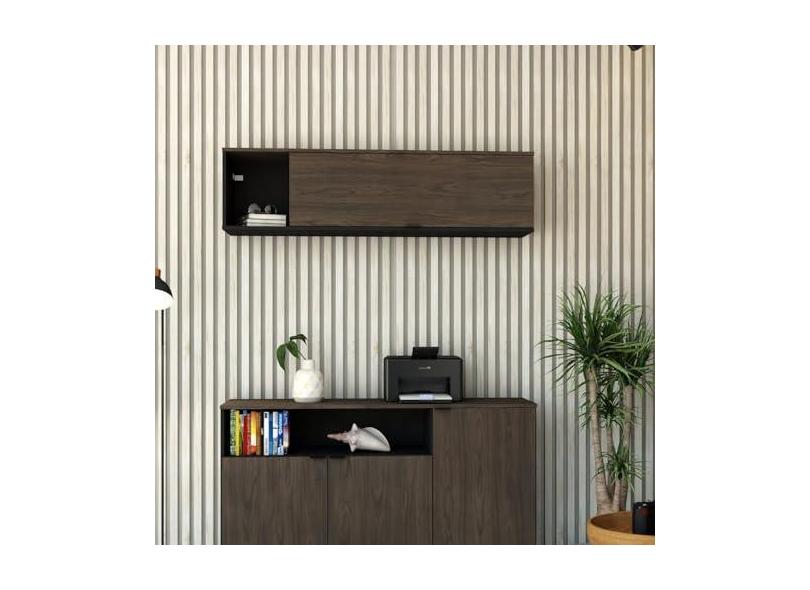 Armário Aéreo com Nicho e Porta Basculante 35x135x35cm Preto/Terracota