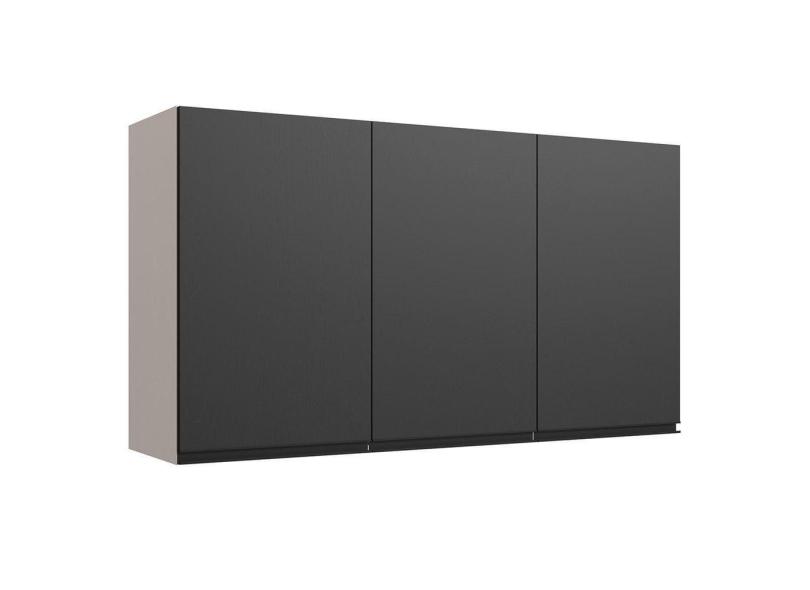Armário Aéreo Cozinha 120 Cm 3 Portas 2 Prateleiras Fumê/Grafite - Quiditá Móveis