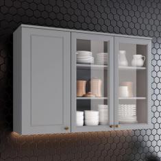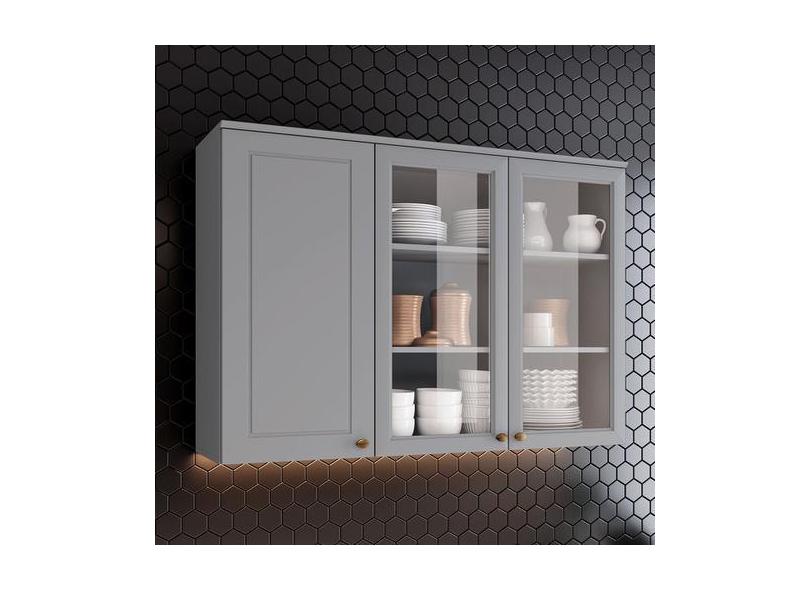 Armário Aéreo Cozinha 120 Cm Americana 3 Portas 100% Mdf Cinza C363 -