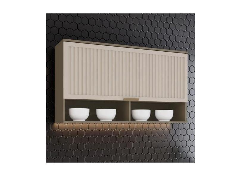 Armário Aéreo Cozinha 120 Cm Connect 1 Porta Ripado Duna/Cristal - Henn