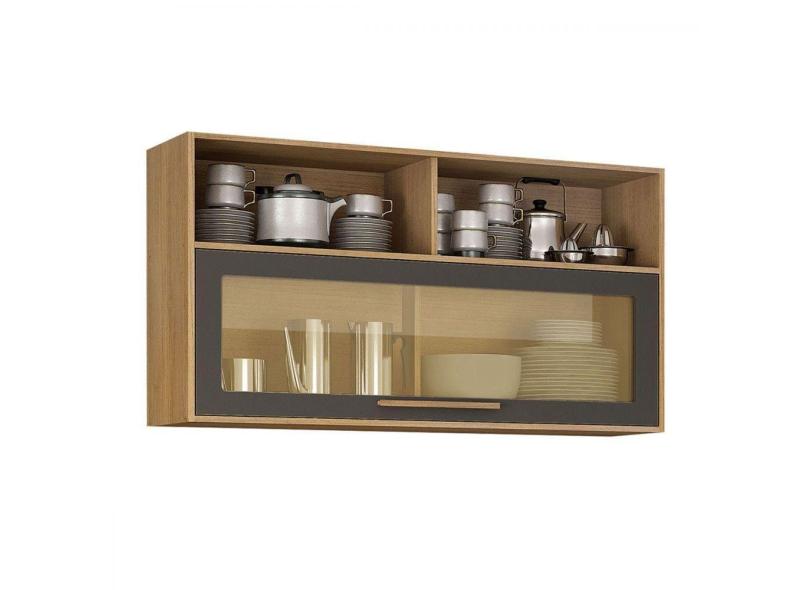 Armário Aéreo Cozinha 120 Cm Salvador 1 Porta com Vidro Cinamomo/Grafite - Valdemóveis