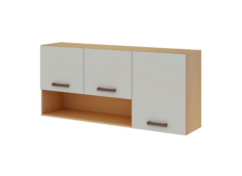 Armário Aéreo Cozinha 120cm 3 Portas com Nicho Freijo/White Laca Bilho - Genialflex