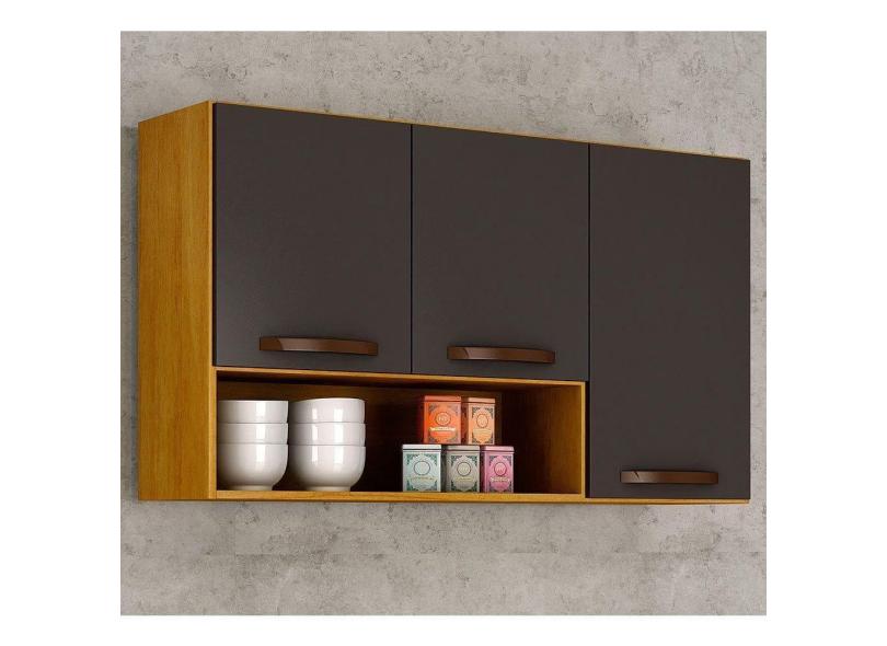 Armário Aéreo Cozinha 3 Portas Maísa Cinamomo-grafite