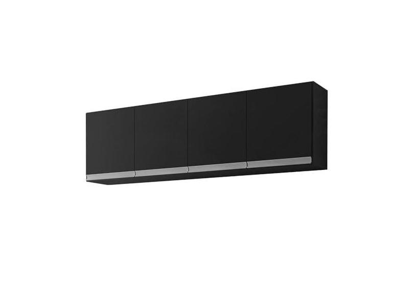 Armário Aéreo Cozinha Andréia 4 Portas 150 cm Preto Fosco Ajl Móveis