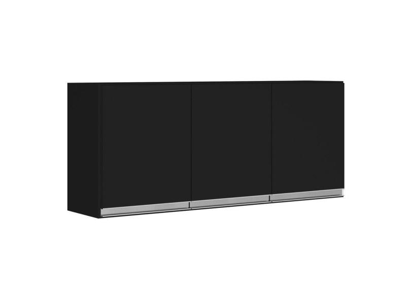 Armário Aéreo Cozinha Lux 120cm Mdf 3 Portas Preto Fosco