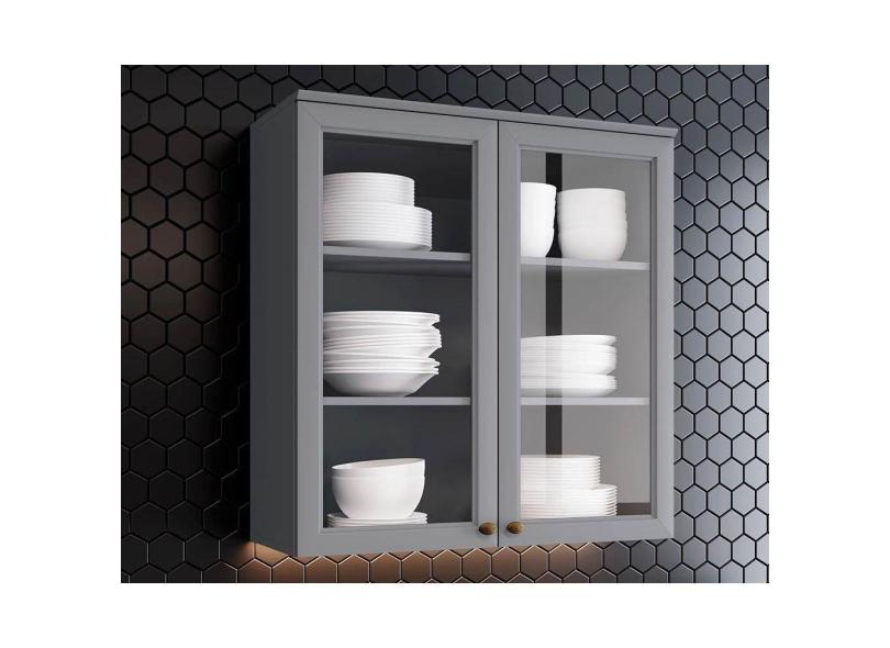 Armário Aéreo Cozinha Modulado Americana 2 Portas de Vidro 80cm Cinza - Henn
