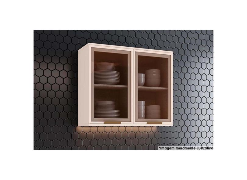 Armário Aéreo Cozinha Modulado Connect c/ 2 Portas c/Vidro 80cm Off White - Henn