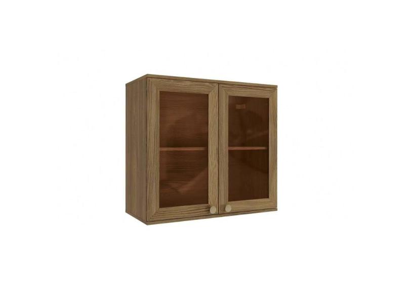 Armário Aéreo Cozinha Modulado Curve N649 c/ 2 Portas c/ Vidro Reflecta 80cm Nogueira - Kappesberg