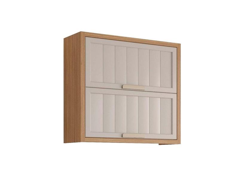 Armário Aéreo Cozinha Modulado Estela c/2 Portas Basculantes Ripada 80 cm Freijo/Off White - mgm
