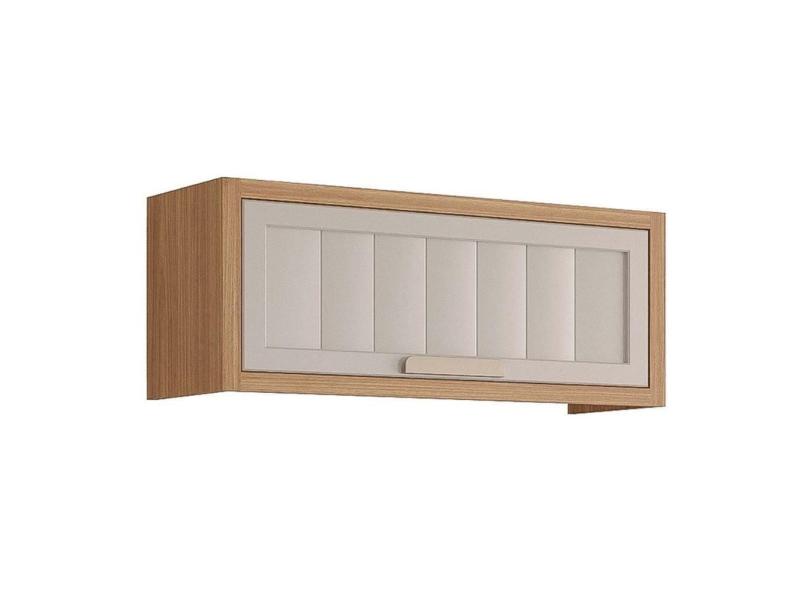 Armário Aéreo Cozinha Modulado Estela Geladeira c/1 Porta Basculante Ripada 80 cm Freijo/Off White - MGM