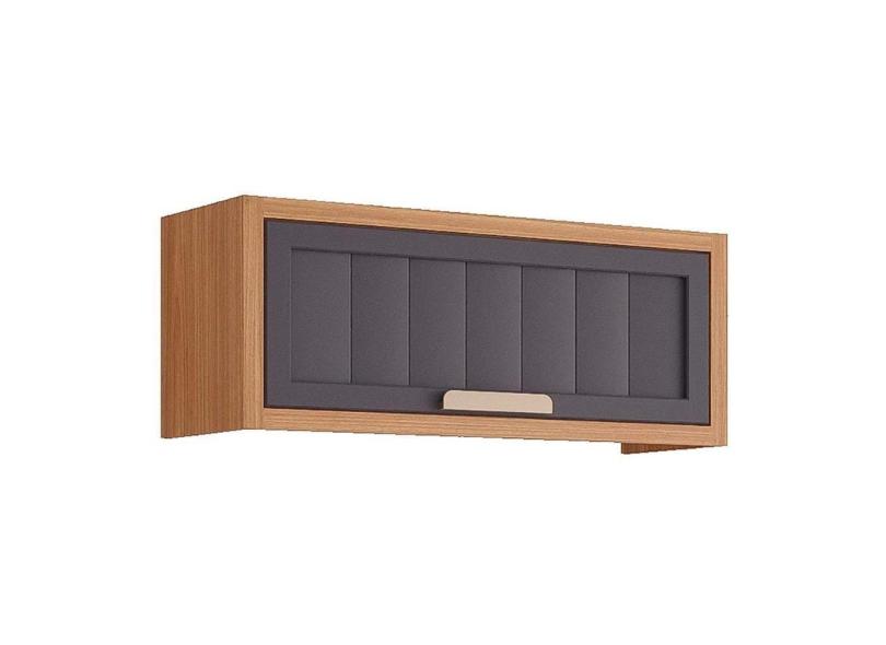 Armário Aéreo Cozinha Modulado Estela Geladeira c/1 Porta Basculante Ripada 80 cm Freijo/Titanium - MGM