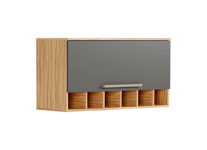 Armário Aéreo Cozinha Modulado Nápoli Prime Geladeira Adega c/ 1 Porta Basculante 80cm Amendoa/Grafite - Ronipa