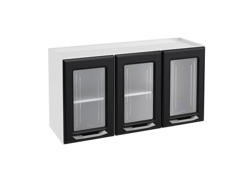 Armario Aereo Cozinha Modulado Topazio 3 Portas C Vidro Branco Preto Telasul