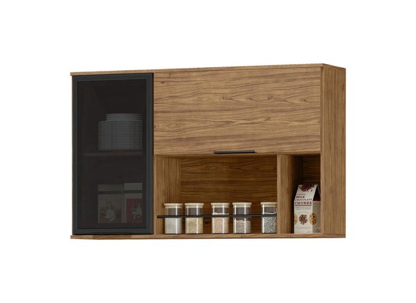 Armário Aéreo Cozinha Toscana 100% Mdf 2 Portas Com Vidro Freijó - Mx