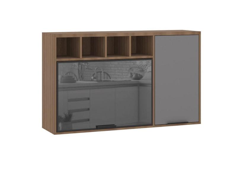 O menor preço encontrado no Brasil para Armário Aéreo De Cozinha 120cm 2 Portas Com Vidro Reflecta E Nichos Aspen Luciane Móveis Vanilla Com Cinza Puro atualmente é R$ 667,35.