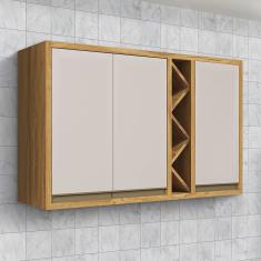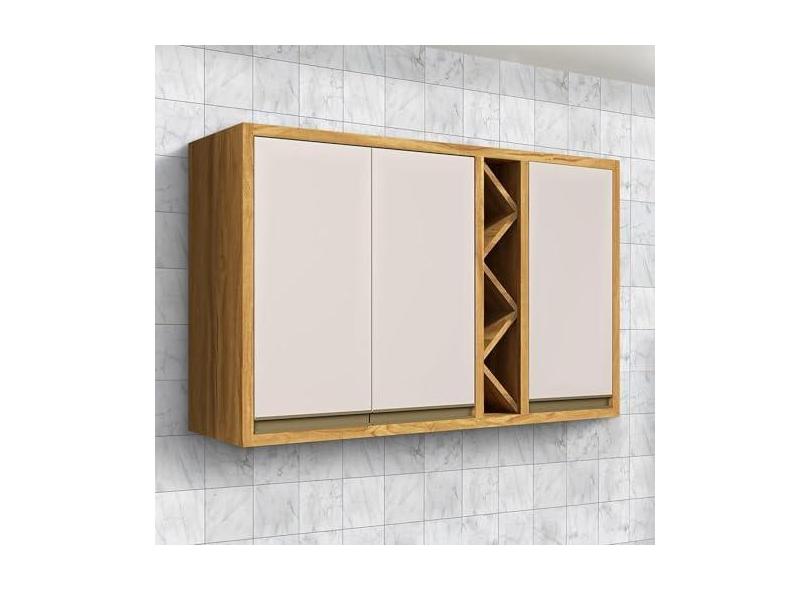Armário Aéreo de Cozinha 120cm 3 Portas 100% Mdf Barbados Espresso Móveis Amêndoa/Off White