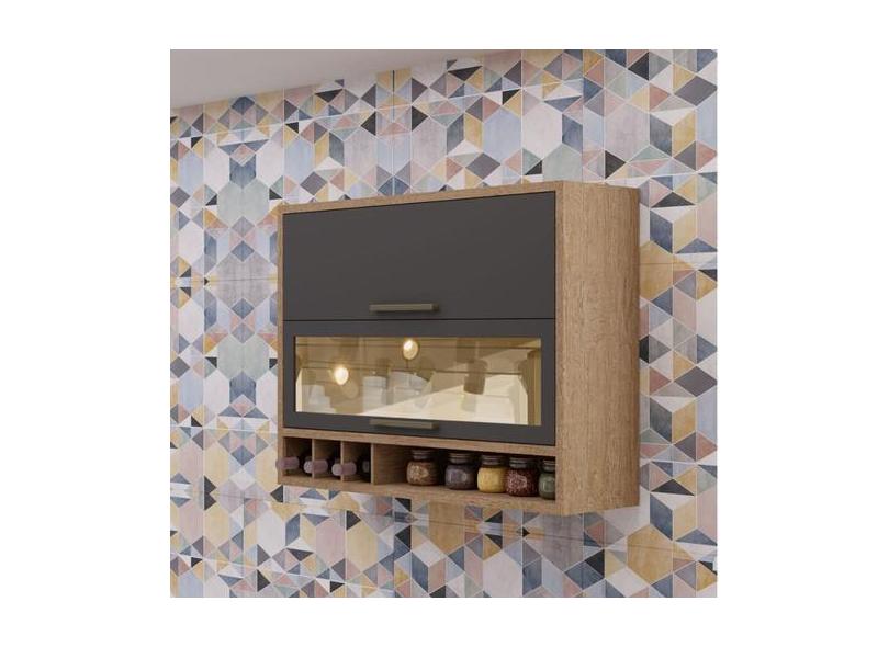 Armário Aéreo de Cozinha 120cm com 2 Portas Basculantes e Vidro Reflec