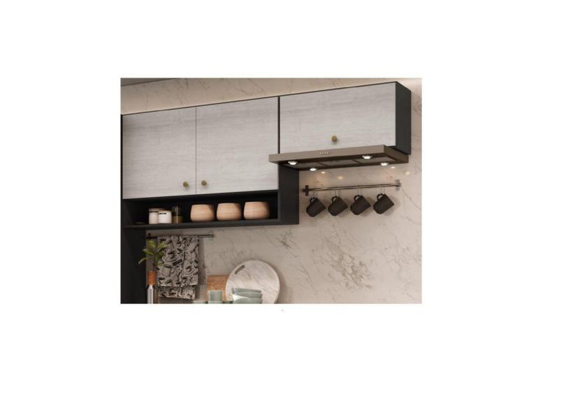 Armário Aéreo de Cozinha 3 Portas Atenas GraLar Grafite/Snow