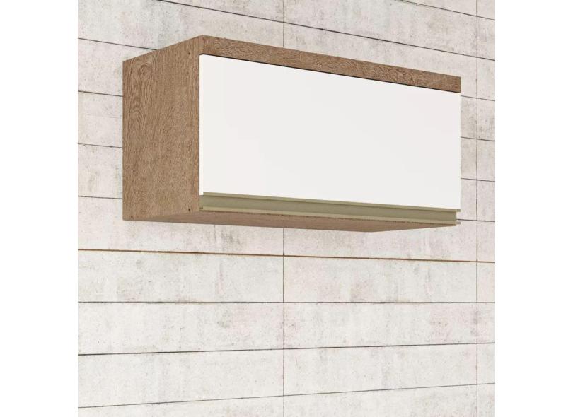 Armário Aéreo de Cozinha 80cm com 1 Porta Basculante 100% MDF Madri Castanho/Branco