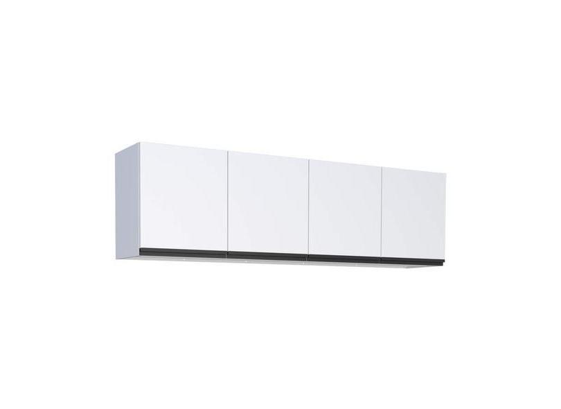 Armário Aéreo De Cozinha Branco Em Aço Montado 195cm Com Puxador Preto