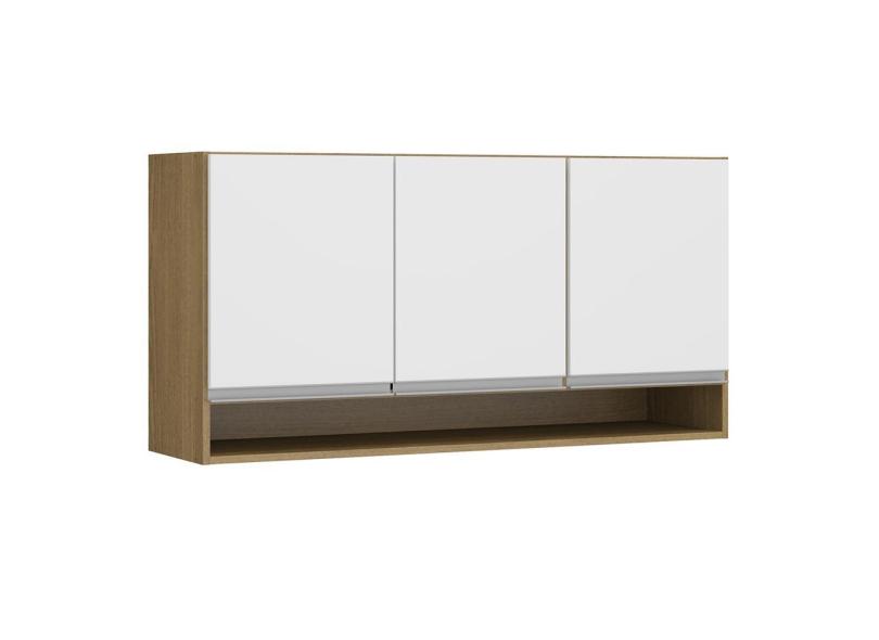 Armário Aéreo de Cozinha com 3 Portas 120 x 52 Cm mdp Branco Avelã 0451