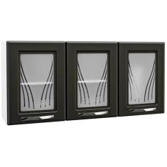 Armário Aéreo De Cozinha Em Aço Star New 3 Portas Com Vidro Branco/Pre