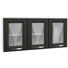 Armário Aéreo De Cozinha Em Aço Star New 3 Portas Com Vidro Branco/Pre