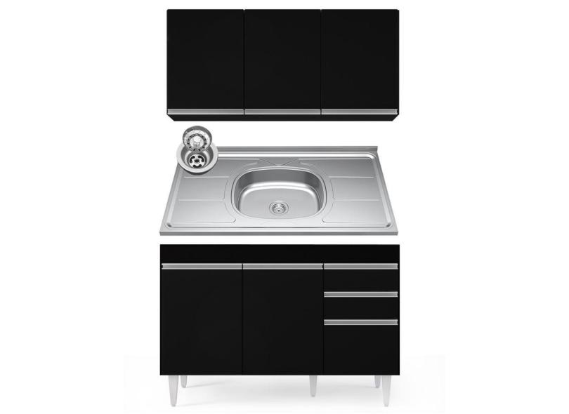 Armário Aéreo E Balcão Com Pia 120Cm Michigan Preto