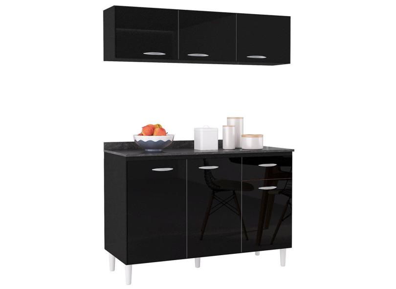 Armário Aéreo e Balcão de Cozinha 120cm com Tampo Classic P11 Preto - Mpozenato