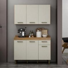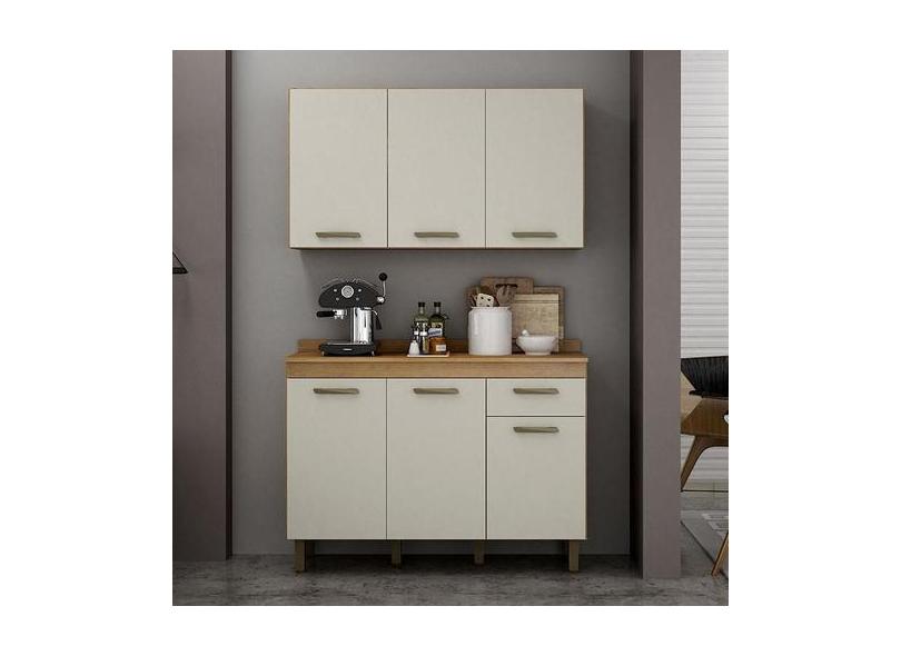 Armário Aéreo E Balcão De Cozinha Ambiente São Luís Cinamomo Off White
