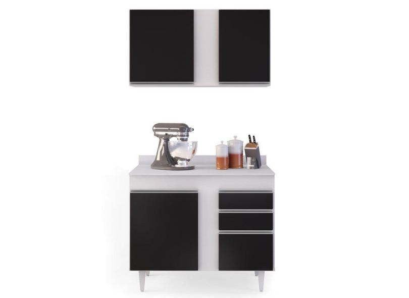 Armário Aéreo Indiana e Balcão Gabinete 100cm Luziania Branco/Preto - Lumil