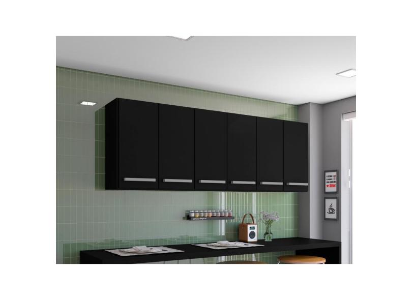 Armario Aereo Maldivas Preto 6 Portas Brienza Movelaria