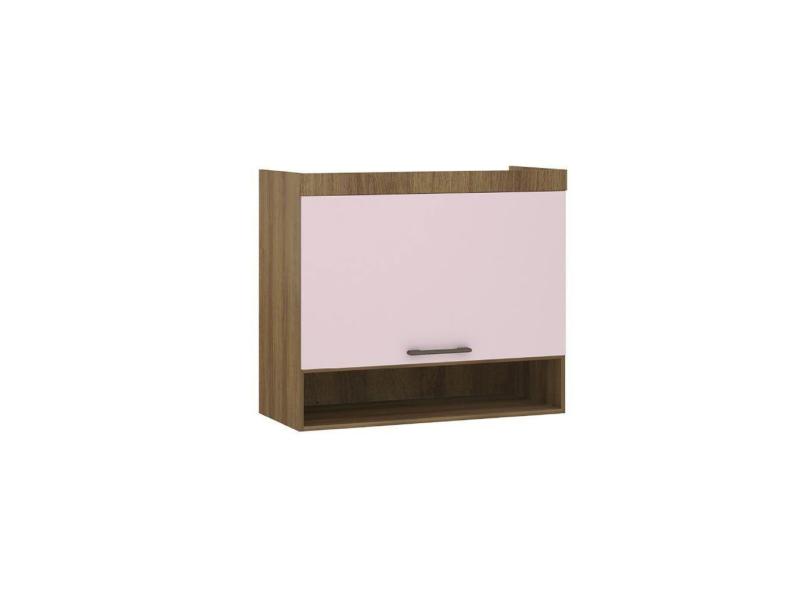 Armário Aéreo Maleiro Modulado 97cm 1 Porta Basculante Paris Luciane Móveis Avelã Pf Com Rosa Pf