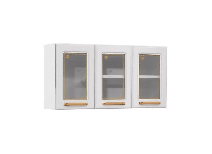 Armário Aéreo P/ Cozinha Diamante 3 Portas C/ Vidro 105cm Branco - Tel