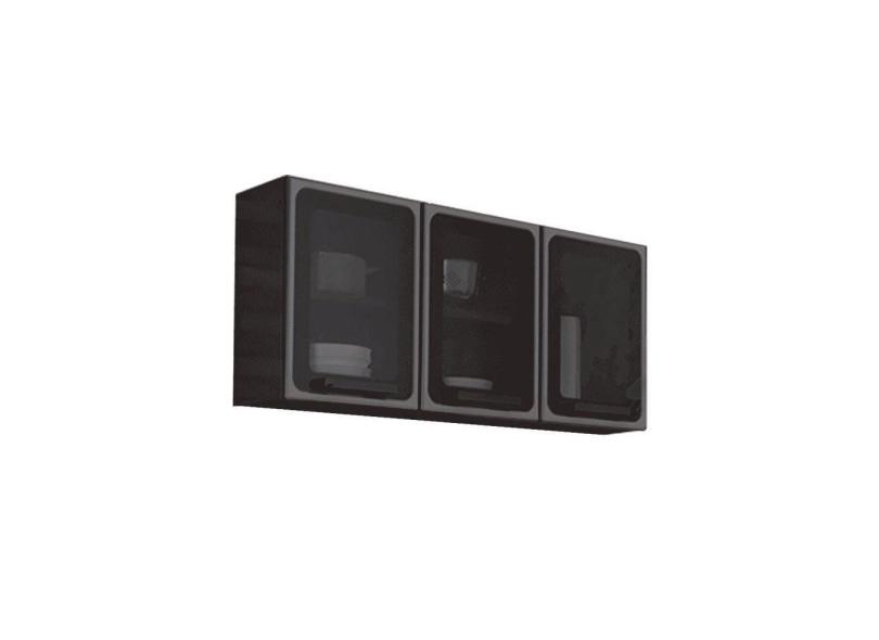 Armário Aéreo P/ Cozinha Estilo 7009 3 Portas C/ Vidro 120cm Cinza/grafite - Bertolini