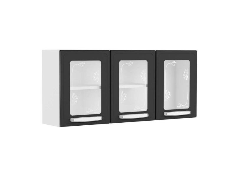 Armário Aéreo P/ Cozinha Evidence 7009 3 Portas C/vidro 120cm Branco/preto - Bertolini