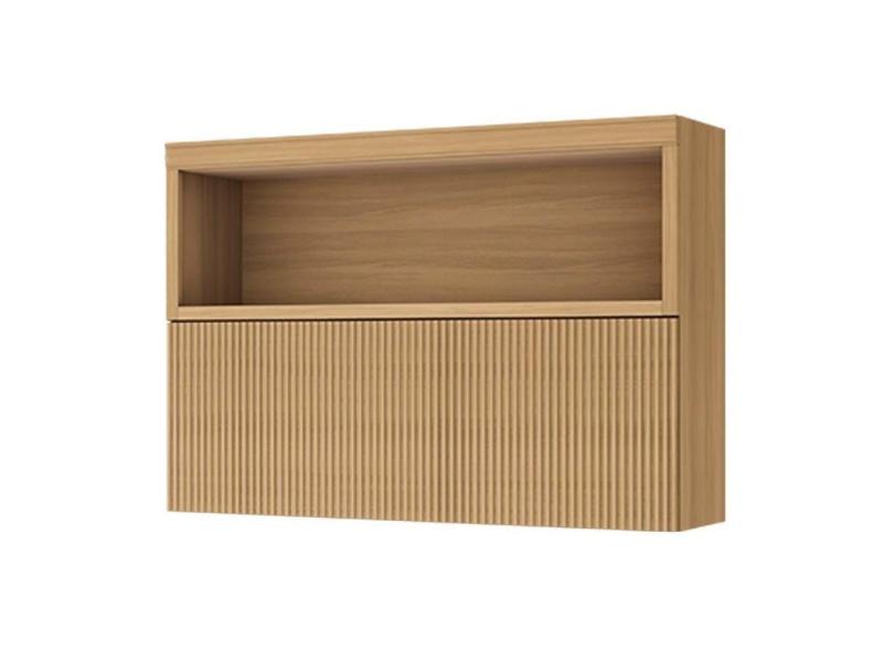 Armário Aéreo P/ Cozinha Marquesa C/ Nicho E 1 Porta Basculante Ripada 120cm Nature - Nesher