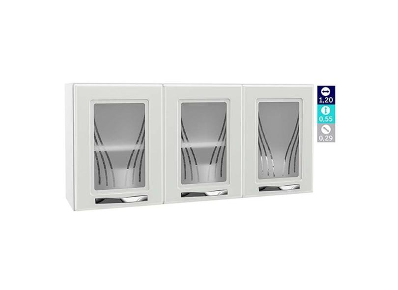 Armário Aéreo P/ Cozinha Star New 3 Portas C/vidro 120cm Branco - Telasul