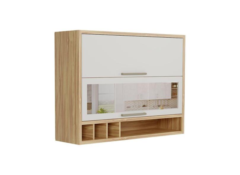 Armário Aéreo P/ Cozinha Syrah Nicho Garrefeiro C/ 2 Portas Basculante 1C/Vidro Reflecta120cm Amendoa/Off White - Ronipa